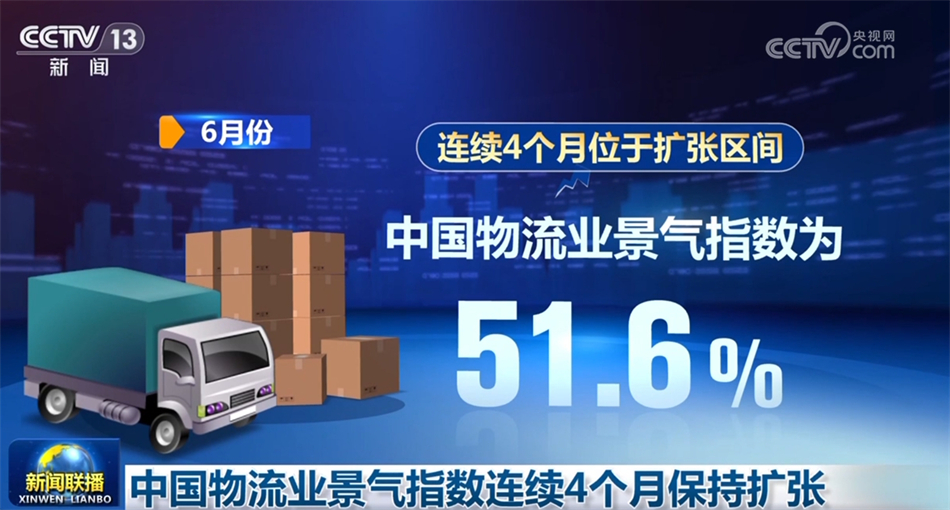中国物流与采购联合会7月2日公布:6月份中国物流业景气指数为51.6%,连续4个月位于扩张区间。从分项指数看,6月份新订单指数为51.9%,道路运输、铁路运输、航空运输、邮政快递等行业新订单指数均在扩张区间。