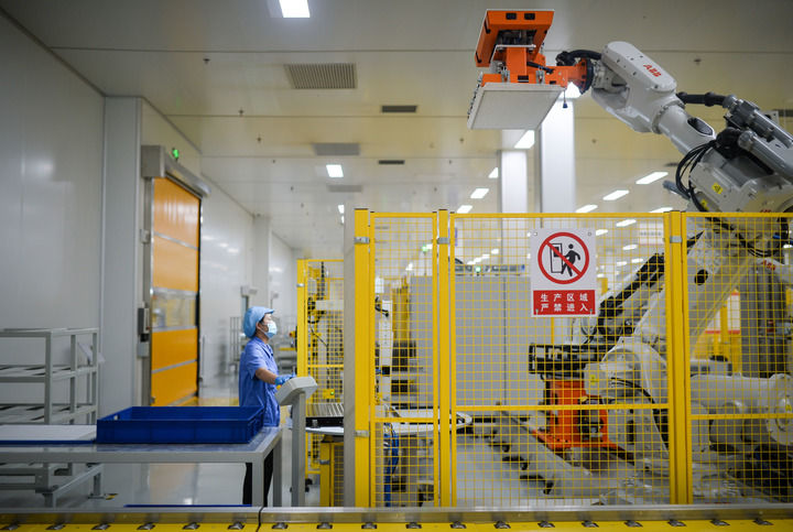2024年5月19日,工人在位于广东珠海的纬景储能珠海“超G工厂”工作。该项目是先进液流储能电池及系统的智能制造中心。新华社记者 李任滋 摄